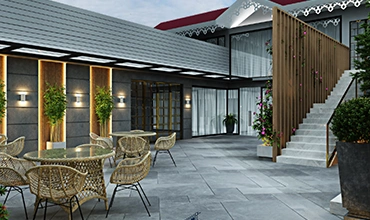 For Thimmui Bhutia’s hotel, we handled the complete interior design — from the café and washrooms to the terrace and guest areas. Every space was thoughtfully planned to create a welcoming and contemporary atmosphere that reflects both comfort and character.